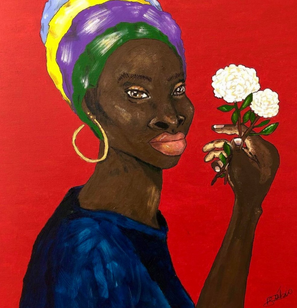 Pietra Sábia é estudante de Filosofia na Universidade de São Paulo (USP) e professora. Como artista, produz quadros, textos e desenhos, tendo em vista o poder político e estético de cada olhar posto em um retrato de provocar reflexão e estranhamento naquele que o percebe. Ano de produção: 2021. Dimensões: 60x60cm.